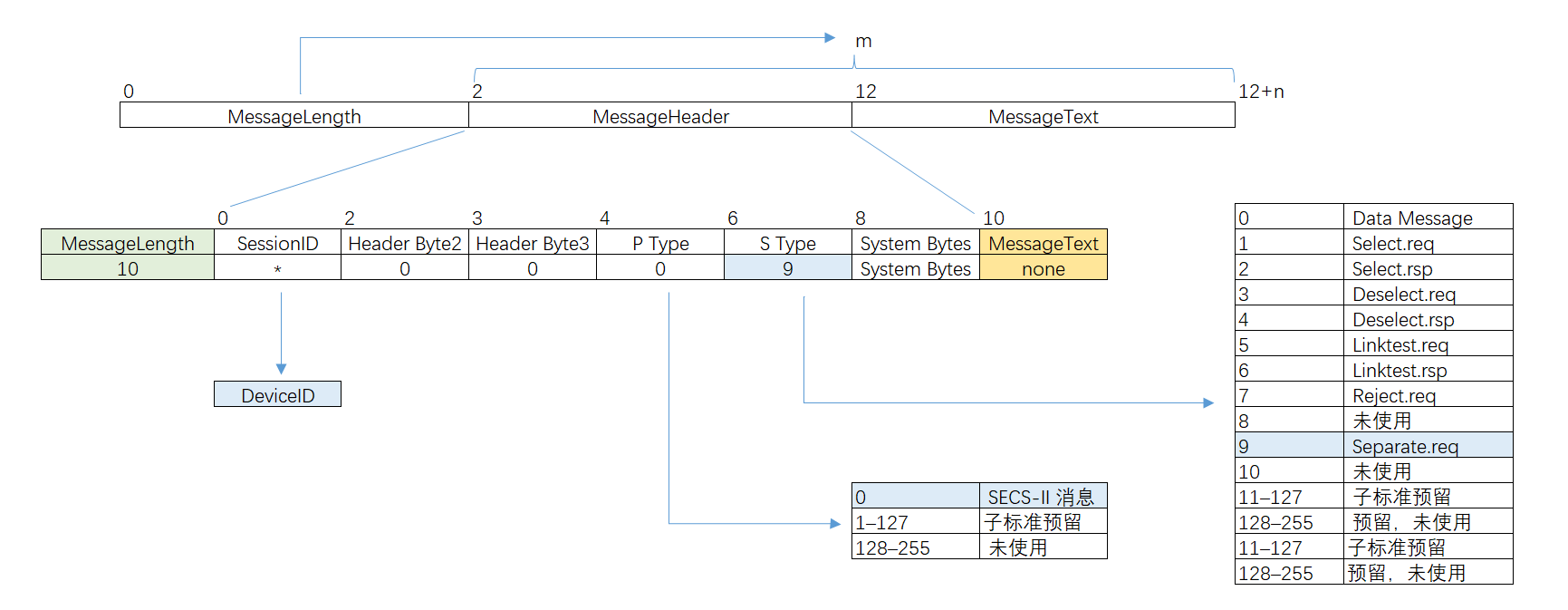 Separate.req后,HSMS 实体会从 SELECTED 状态转回到 NOT SELECTED 子状态。 - T7 的作用:一旦进入 NOT SELECTED 状态,T7 计时器立即启动。如果实体在 T7 超时周期内(典型值为 10 秒)未能通过 Select 规程重新进入 SELECTED 状态,则必须断开 TCP/IP 连接并转入 NOT CONNECTED 状态。